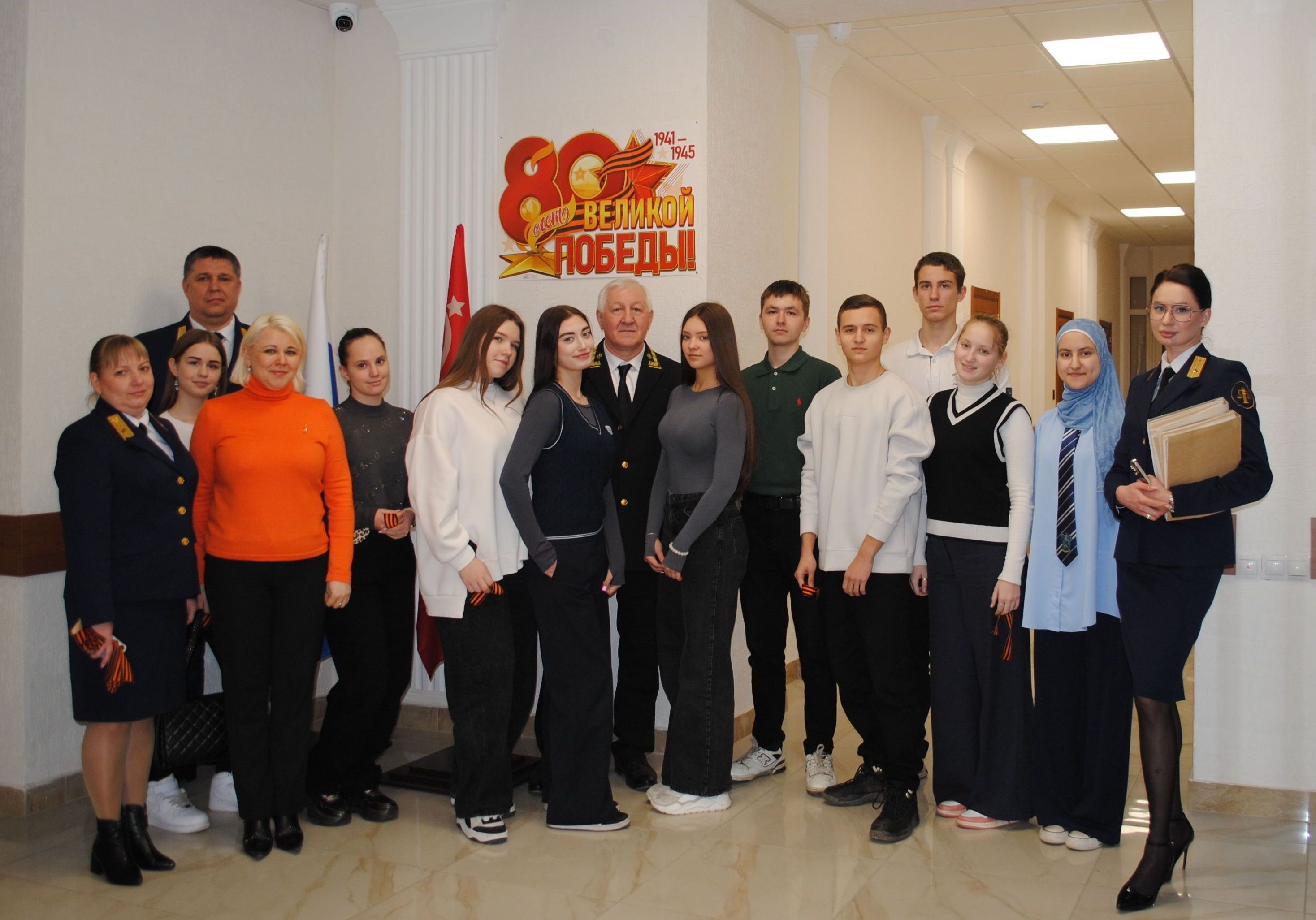 В рамках Концепции информационной политики судебной системы на 2020-2030 годы, в связи с проведением мероприятий, посвященных 80-й годовщине Победы в Великой Отечественной войне 1941-1945 годов, с целью патриотического воспитания школьников, учащиеся 10 классов ГБОУ «Гимназия № 6 г.о. Донецк» посетили Верховный Суд Донецкой Народной Республики. Судьи Верховного Суда провели для учащихся старших классов познавательную экскурсию по залам суда, рассказали историю суда, о категориях дел, рассматриваемых судом, используемых судом современных технологиях, таких, как видео-конференц-связь и комплекс аудиопротоколирования. Школьники на реальном примере смогли ознакомиться с судебным процессом и повысить свою юридическую грамотность. Председатель Совета судей Донецкой Народной Республики Храпин Ю.В. обратил внимание на то, какими качествами должен обладать человек, который хочет стать судьей. Заместитель Председателя Верховного Суда Еремин Д.А. обратил внимание подрастающего поколения на то, что основной задачей судей является вынесение справедливого, законного и обоснованного решения. Руководители структурных подразделений Верховного Суда вручили старшеклассникам георгиевские ленточки. Затем учащиеся посетили музей судебной системы Донецкой Народной Республики, который произвел на старшеклассников большое впечатление. Старшеклассники узнали много нового и зарядились положительными эмоциями. |